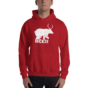 - Bear With Deer Antlers Beer Textured Print Hooded Sweatshirt (5 Colors)